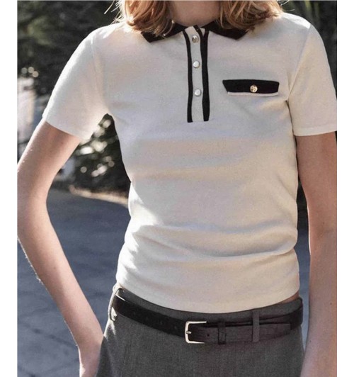 Polo con un diseño femenino para chicas que buscvcan un look cómodo, moderno y sofisticado. Con cuello camisero y botones metálicos que dan un toque de distinción añadido al detalle del falso bolsillo. Versátil se puede combinar con diferentes estilos de pantalones y faldas