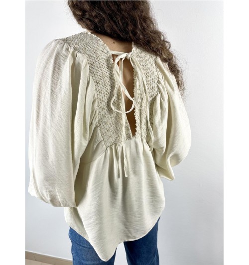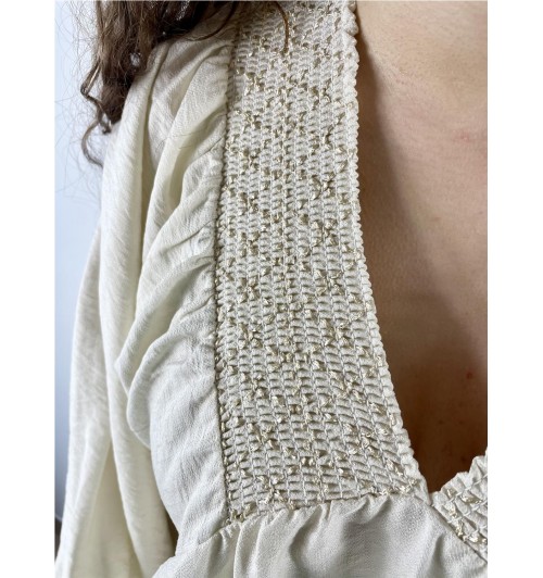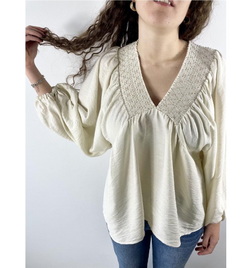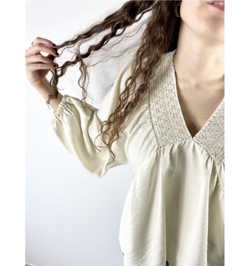Camiseta pico doble gomas BEIGE
