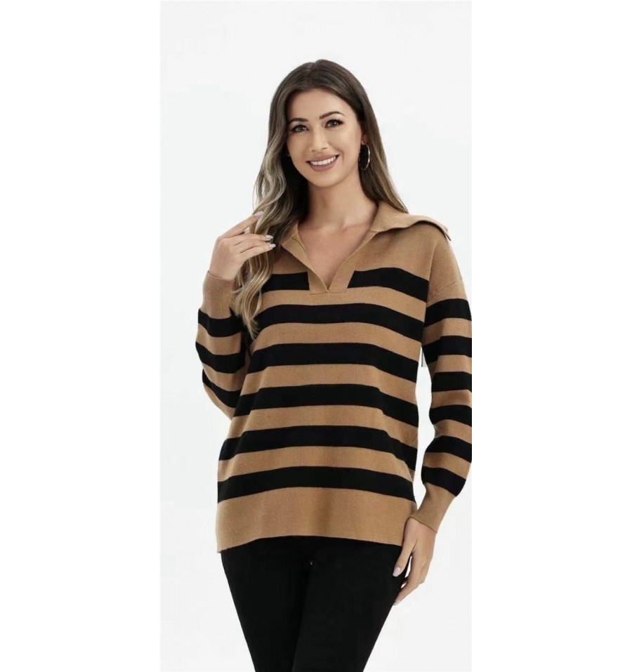 Suéter de diseño clásico con franjas en horizontal y un práctico cuello camisero. De un suave punto y con un cómodo cuello camisero, las franjas añaden un toque de contrate al estilo