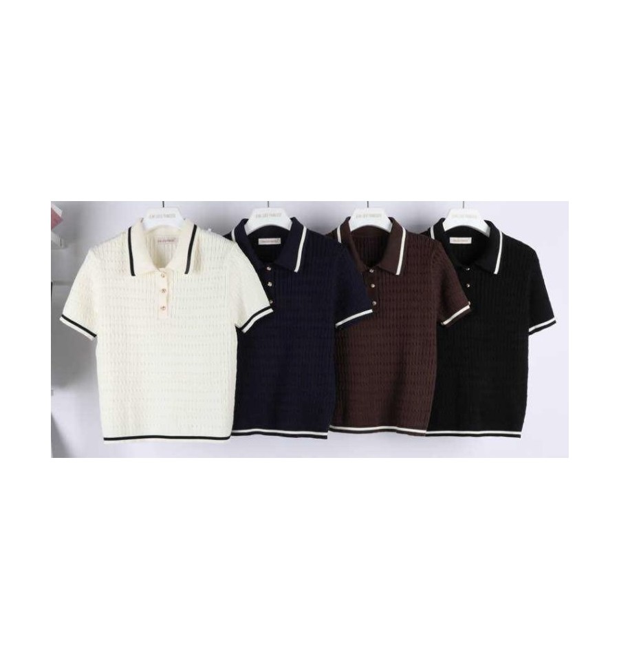Polo de punto con diseño sofisticado y juvenil. Con un tejido de puntode ochos texturizado y suave. Con una lista blanca en el cuello , manga y bajo añade un toque de contraste a la prenda. Se puede combinar tanto con pantalón como con falda para crear un look personalizado