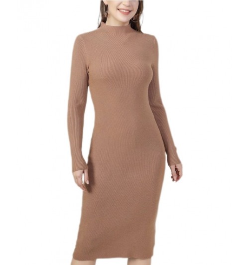 Cómodo vestido midi de punto canalé ajustado, con manga larga y ajustado , medio ceullo lo que lo hace ideal para esta época otoñal